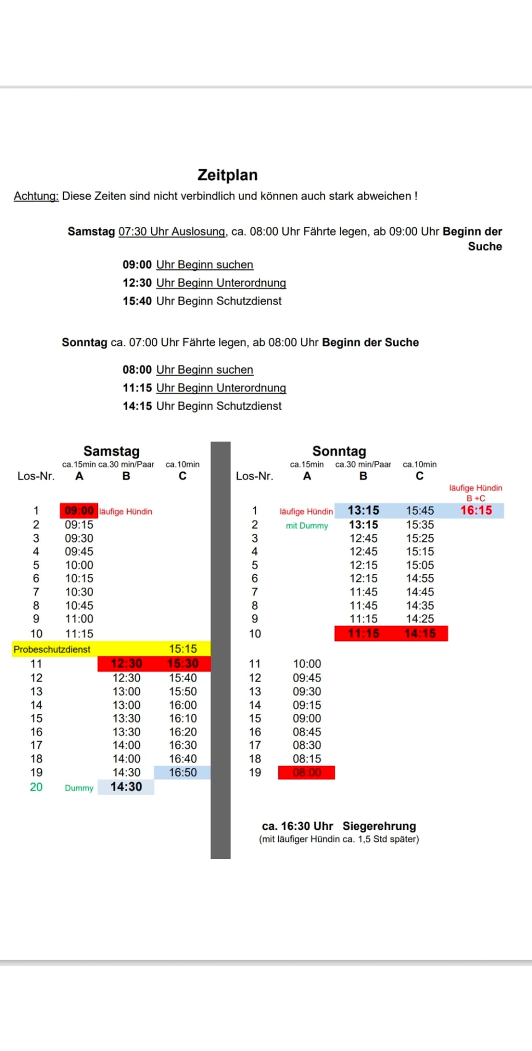 unten der Zeitplan für die diesjährige LG-FCI und JJM, er dürfte den Bedürfnissen der Hundeführer entsprechen.